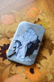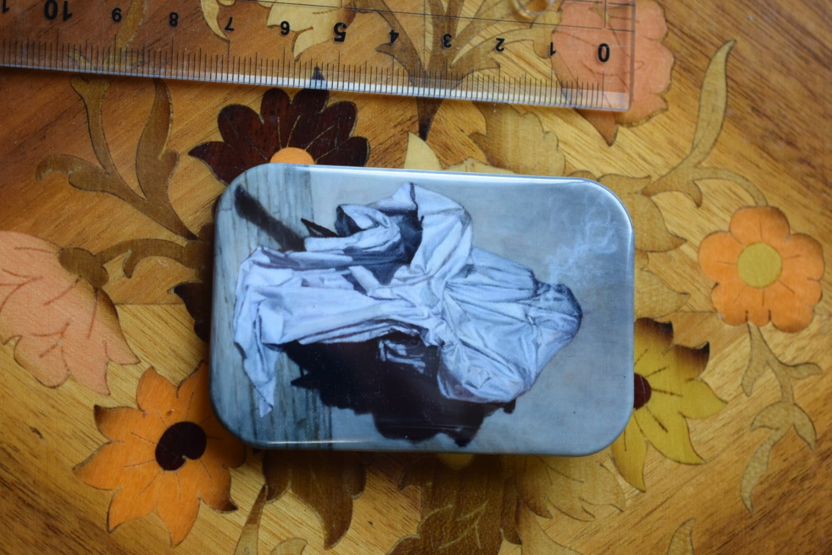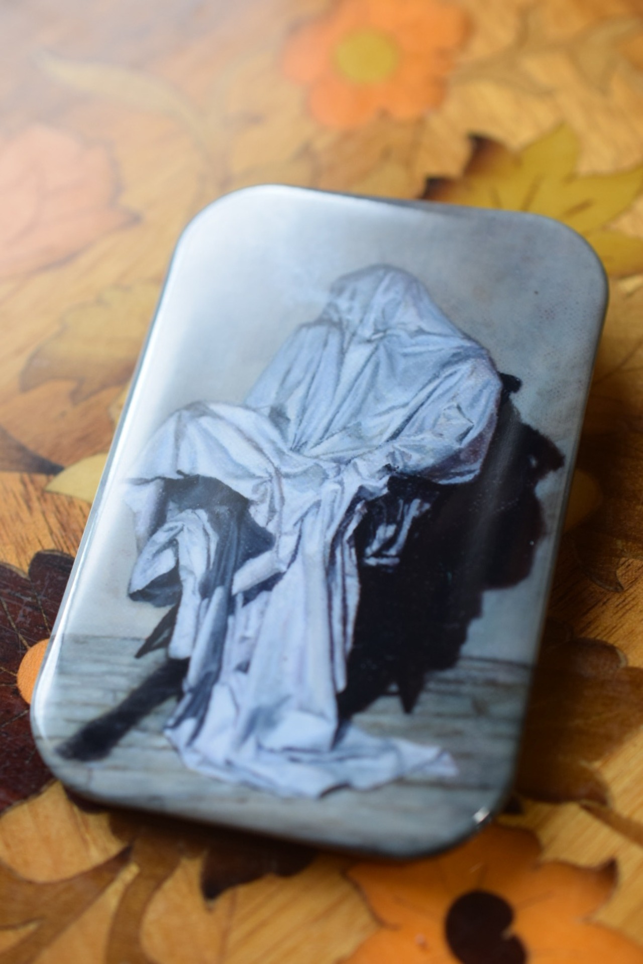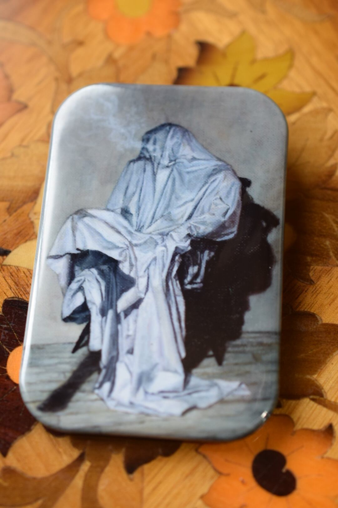 油彩作品「くゆらすおばけ」の缶バッジです。